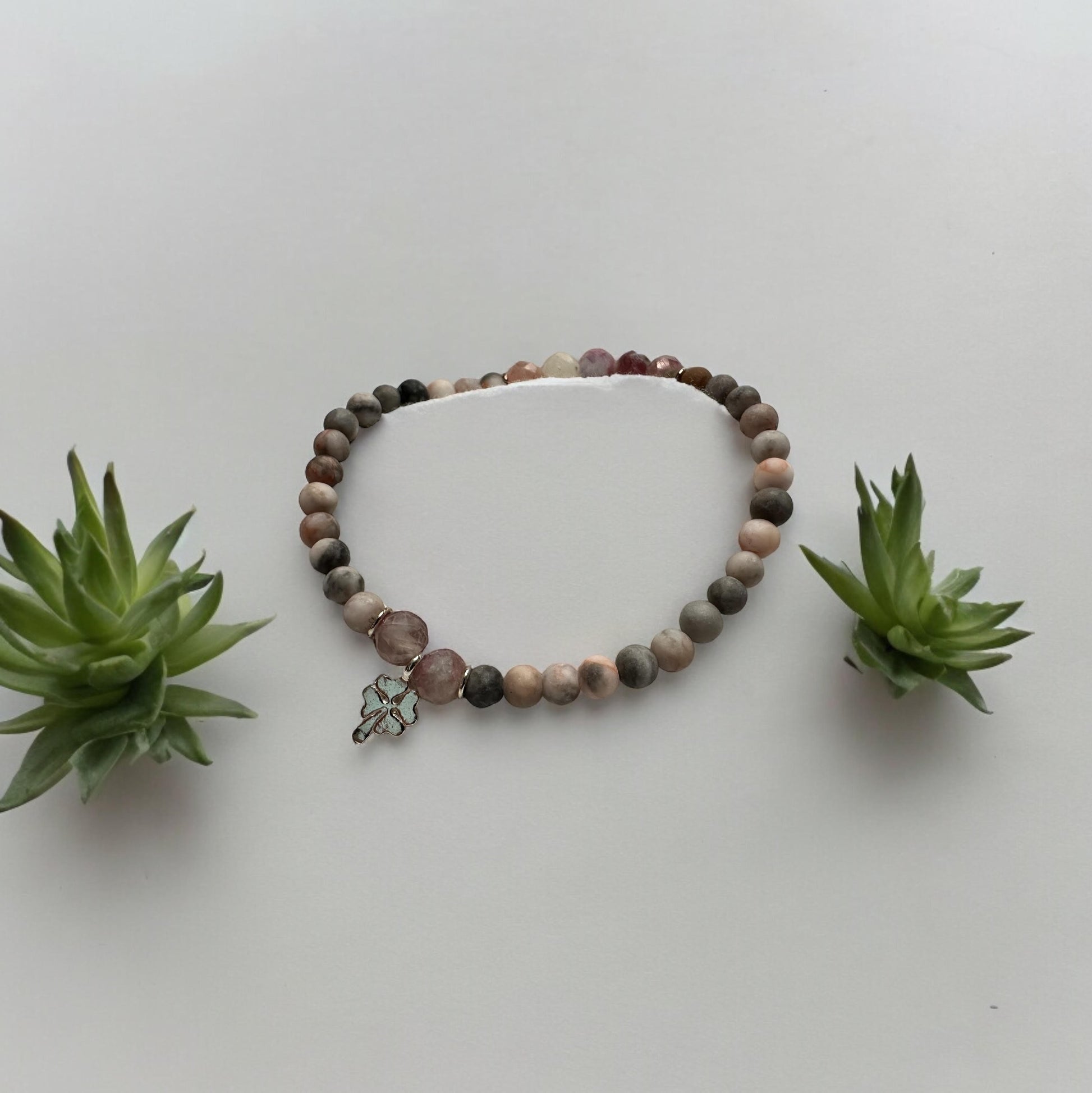 Zebra jasper and Pink tourmaline with sterling silver 925 lucky charm